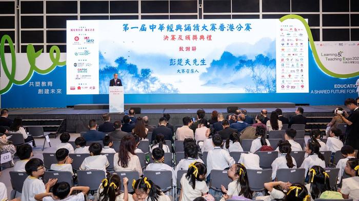 第一届中华经典诵读大赛香港分赛召集人彭楚夫先生在致谢辞中表示,作为一项国家级赛事,全国每年有多达四千支队伍参赛,具有极高的权威性和挑战性。今年首次在香港举办分赛,由香港特区教育局与GAPSK语文推广委员会联合主办,共有160支队伍参赛。胜出队伍将代表香港参加今年八月下旬在重庆举行的全国总决赛。今年亦适逢GAPSK语文推广委员成立20周年及展演会10周年,委员会将继续透过不同平台和活动,协助港澳学生深入理解中华经典文学,提升价值观及普通话水平。他特别感谢国家教育部及国家语委的指导支持,以及约50家支持机构的鼎力相助,期望透过是次大赛让更多人感受中华文化经典的魅力,让传统文化在香港深植根基,代代相传。