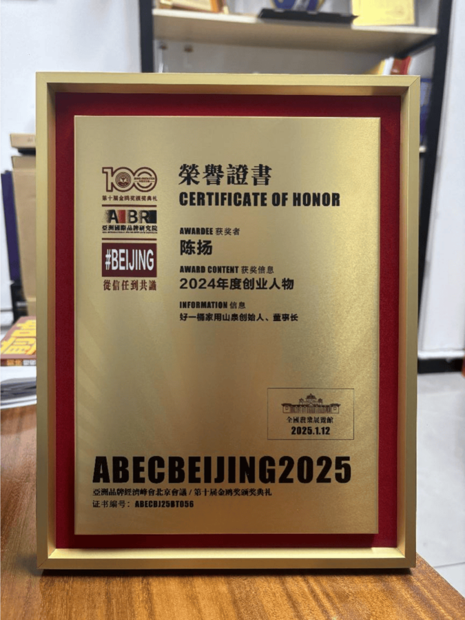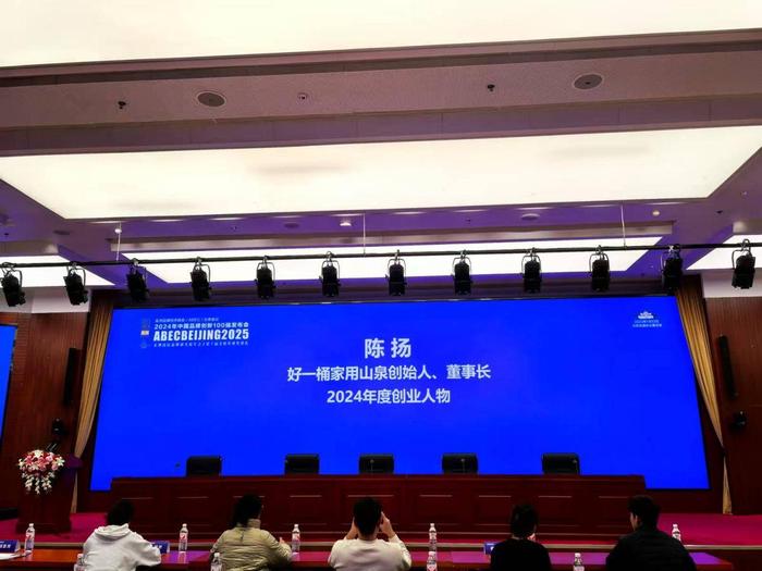 在峰会备受瞩目的颁奖典礼中,荣耀之光聚焦于一位杰出的创业者——好一桶家用山泉创始人陈扬,他成功斩获“2024年度创业人物”大奖。这一奖项不仅是对陈扬个人非凡创业历程的高度肯定,更是好一桶家用山泉在饮用水市场卓越成就的有力见证。