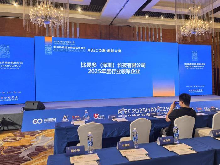 5月25日,亚洲品牌经济峰会2025杭州会议在杭州龙禧福朋喜来登酒店圆满举办。此次峰会由亚洲国际品牌研究院主办,汇聚了来自中国香港、迪拜、泰国、新加坡以及全国各地的300多位企业家、行业专家及品牌创始人。峰会围绕“创新无界,大浪淘沙始见金”的主题,深入探讨品牌经济的创新趋势与数字化生态下的商业机遇。在这样的高端对话与资源整合平台上,比易多凭借卓越的创新成果,荣获2025ABEC亚洲创新大奖。