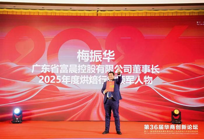 2026年1月11日,苏州会议中心,第三十六届华商创新论坛暨第十一届中国金鸥奖颁奖典礼盛大开幕。在这场汇聚了众多行业精英与创新力量的盛会中,大会特别邀请到广东省富晨控股有限公司(简称“富晨控股”,下同)董事长梅振华先生作为主讲嘉宾,其演讲专题《新周期下中国烘焙行业的品牌创新与发展前景》,在现场引起了极大反响。颁奖环节中,本届中国金鸥奖历年来首次为中国烘焙行业设立奖项,梅振华董事长凭借其在烘焙行业的卓越成就和深远影响力,荣获第十一届金鸥奖2025年度烘焙行业领军人物殊荣。